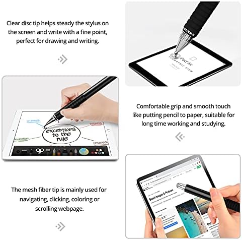 The fine point disc allows for greater precision and accuracy when navigating touch screens, making it perfect for drawing, writing, or just scrolling through your favorite apps. The capacitive stylus pen also features a soft silicone tip for a more natural feel when using your device.